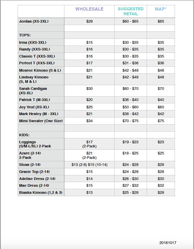 MAP Pricing Sheet